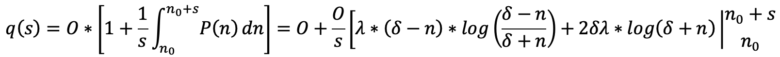 \(P(n) = - {\mathbf{λ}}*log\left( \frac{\delta - n}{\delta + n} \right)\)