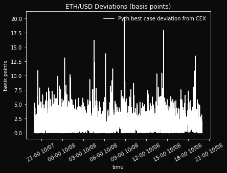 10/7 8:00 PM - 10/8 8:00 PM. During this subperiod, Pyth best case avg. deviation is $0.19 (1.4 bps).